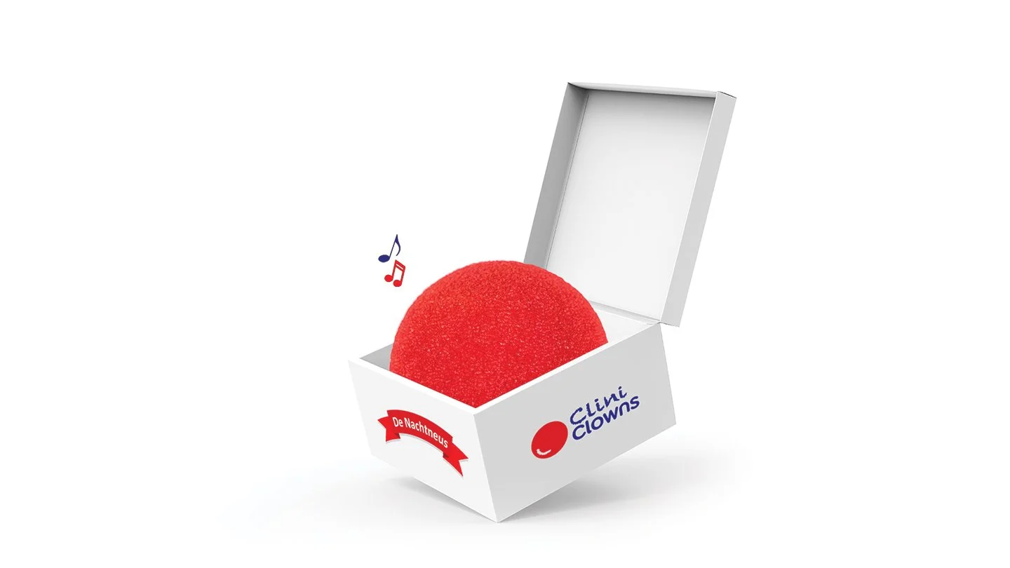 CliniClowns is a Dutch charity providing distraction for sick and disabled children in the hospital. They presents: De Nachtneus. A clowns nose designed for the night. De Nachtneus is filled with reassuring words to help children through long hospital nights. Inside ‘De Nachtneus’ is a small box that gets activates when squeezed. It plays funny and reassuring words. These personal messages are recorded by the CliniClowns, family and friends.